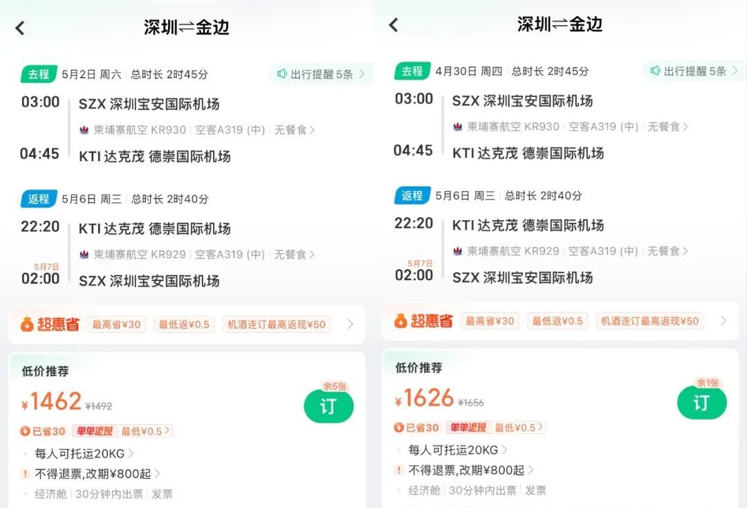 2、柬埔寨航空,五一期间,深圳=金边1K4起,直戳图片可直达👇