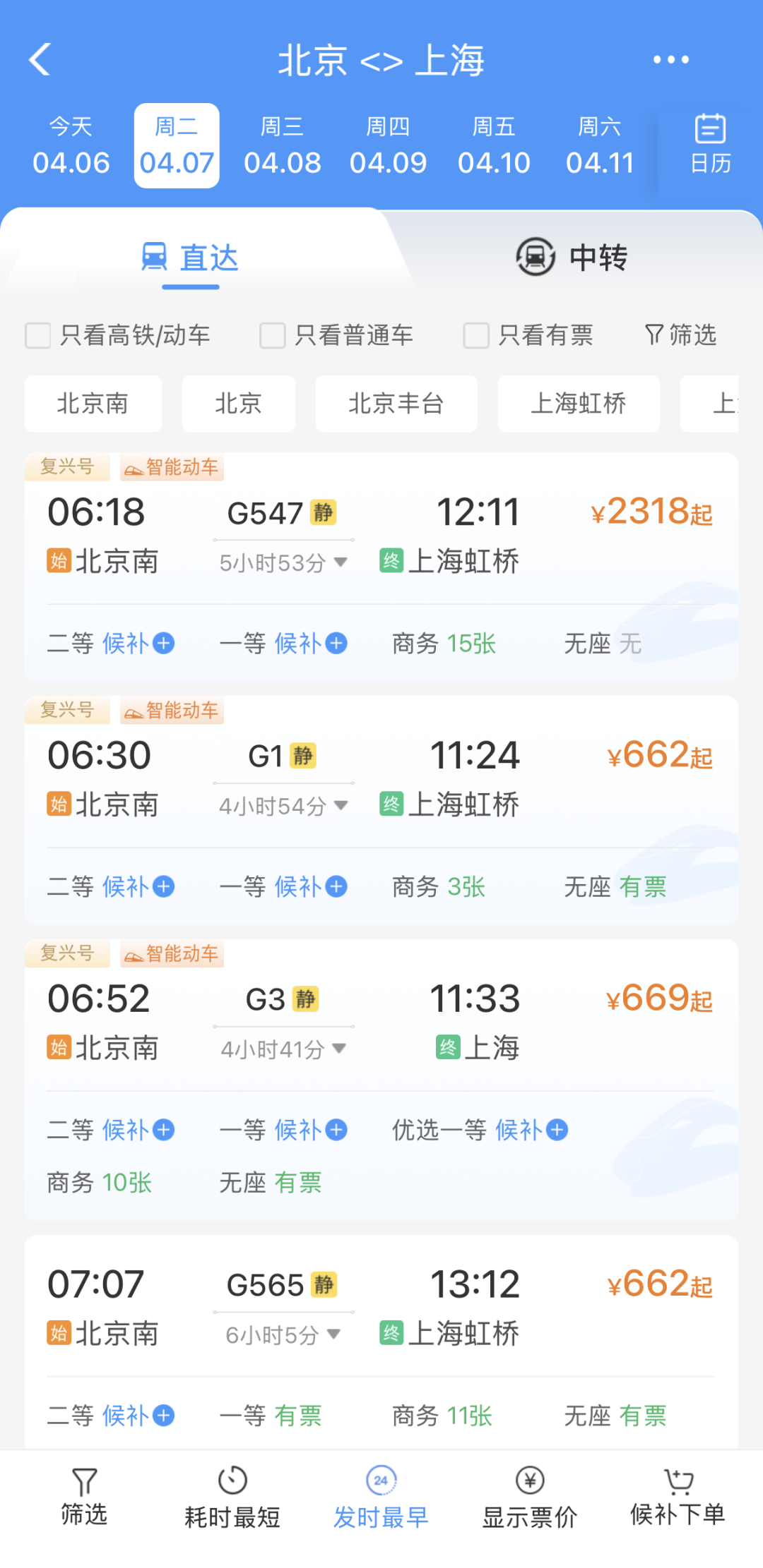 京沪、京广这些热门线,清明前后票价上浮10%-20%,高峰还抢不到票,全是候补。
