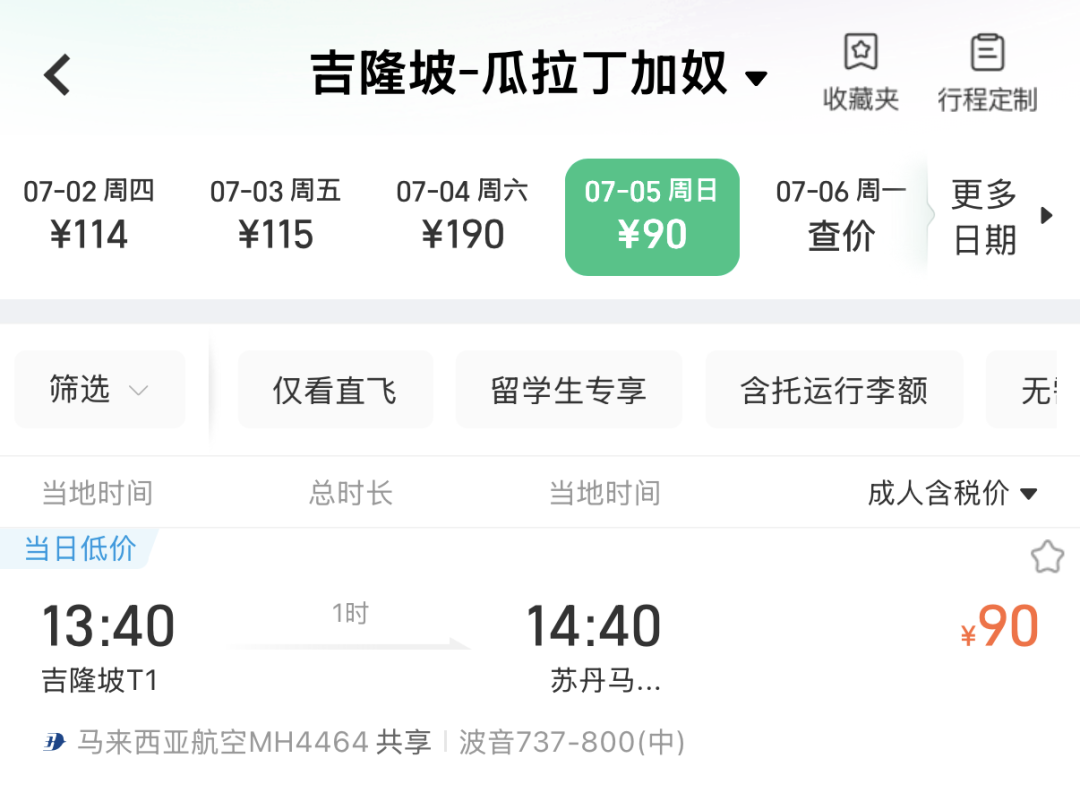 另外,前几天分享的马航暑假国庆票,除了国际线,国内线一趟也才几十块,暑假部分日期还可以捡漏!