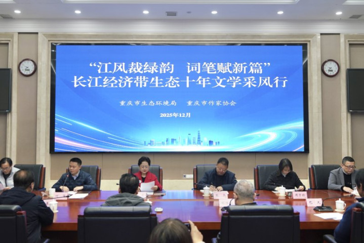 12月8日上午,“江风裁绿韵词笔赋新篇——长江经济带生态十年文学采风活动”在重庆市生态环境局正式启动。来自长江经济带沿线地区及海外的11位知名作家齐聚山城,将深入重庆两江新区、巴南、梁平、开州等地的生态治理一线,用文学笔触记录长江经济带发展战略实施十年来的生态蝶变,展现巴渝大地人与自然和谐共生的生动实践。