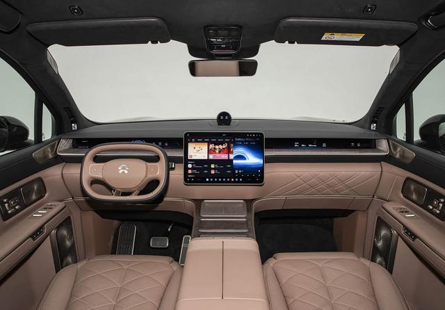进入车内,内饰围绕移动行政会客厅打造,提供 6 座(2+2+2,中岛 / 通道版)、7 座(2+3+2)双布局,大面积全粒面无铬鞣 Nappa 真皮、高寒枫影真木、Alcantara 包裹,触感与质感对标百万级豪华车。中控台核心是48 英寸 AR-HUD+Skyline 天际线三联屏(12.3 英寸仪表 + 15.6 英寸中控 + 12.3 英寸副驾),搭载 SkyOS?天枢全域系统 + 骁龙 8295 + 神玑 NX9031 双芯片,操作流畅、多屏联动,支持 NOMI 4.0、540° 全景影像、车载飞书等,空间是核心优势,3250mm 轴距带来越级空间,6 座版为核心舒适取向,第二排标配飞航零重力座椅,26 向电动调节、通风 / 加热 / 多点按摩、电动腿托 / 脚踏,支持 160° 躺平,媲美头等舱。